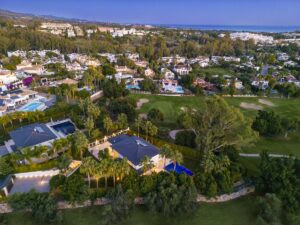 Villa Aura ocupa una ubicación muy deseable en primera línea de golf dentro del prestigioso Valle del Golf de Nueva Andalucía.