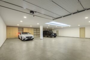 Rodeado de exuberante vegetación, ofrece un refugio privado, acentuado por una gran entrada con cautivadores paisajismo y un camino privado que conduce a un amplio garaje con capacidad para 10 coches. Los espacios exteriores son un oasis, con generosas áreas de descanso, espacios para cenar al aire libre y un jardín de dos niveles conectados por